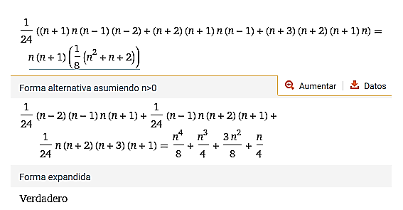 También se puede verificar algebraicamente. Antes hemos sustituido los números combinatorios por su expresión respecto a n: